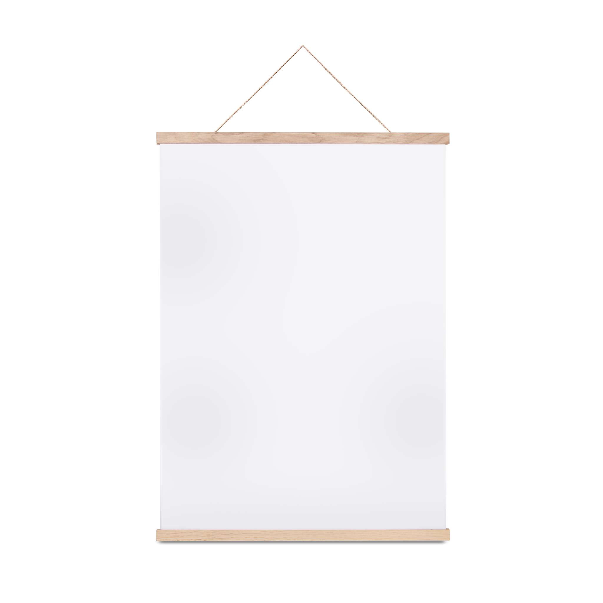 - Design a funkčnost: Skládá se ze čtyř dřevěných lišt – dvou pro horní a dvou pro spodní část výtisku. Každá lišta obsahuje silné neodymové magnety, které pevně a šetrně sevřou váš plakát, aniž by ho propíchly nebo poškodily.