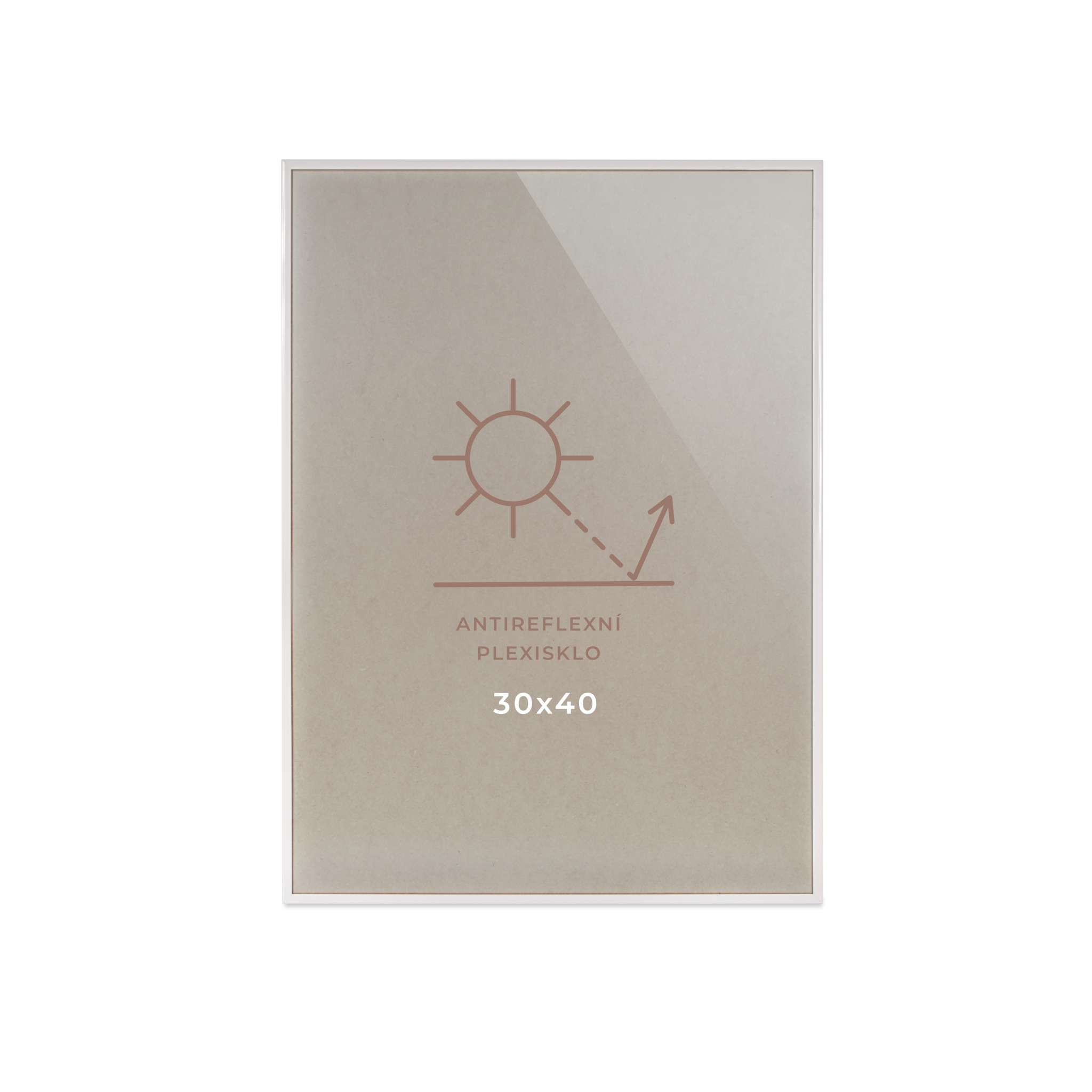 - Plexisklo: Rám je vybaven 2 mm antireflexním plexisklem. (Výhody antireflexu - oproti standardnímu čirému sklu či plexisklu minimalizuje antireflexní vrstva nežádoucí odlesky světla. To zajišťuje, že se vaše fotografie nebo grafiky budou zobrazovat jasně a s maximálními detaily i v jasně osvětlených místnostech. Ideální pro vystavení fotografií, kde je klíčové zachovat plnou viditelnost barev a kontrastů bez rušivých odlesků, které by snižovaly zážitek z prohlížení. Plexisklo je zároveň lehčí a odolnější proti rozbití než sklo, což zvyšuje bezpečnost, zejména v domácnostech s dětmi.