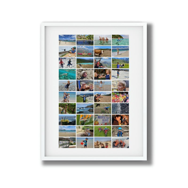 Vytvořte si fotokoláž ze 40 fotek na šířku do fotografie o velikosti 40×60 cm vám vytiskneme na profesionální matný fotopapír o gramáži 240g. Bude mít 4 cm širokou paspartu v barvě, kterou si můžete vybrat dle sebe. Vytvoříme vám i kompletní fotoobraz, když fotografii umístíme do obrazového rámu pod antireflexní plexi, které výrazně snižuje odlesky v místnosti.