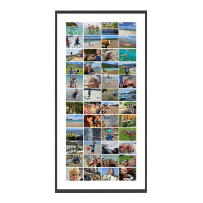 Vytvořte si fotokoláž ze 48 fotek na šířku o rozměru fotografie 50×100 cm. Vytiskneme ji na profesionální matný fotopapír o gramáži 240g. Vytvoříme vám i kompletní fotoobraz, když fotografii umístíme do obrazového rámu pod antireflexní plexi, které výrazně snižuje odlesky v místnosti. Vše si upravíte v konfigurátoru.
